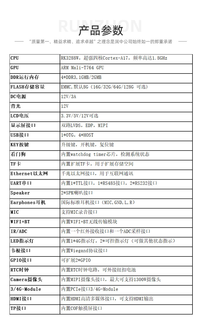 RK3288主板安卓/Linux系統可配7寸-24寸TFT觸摸顯示屏方案