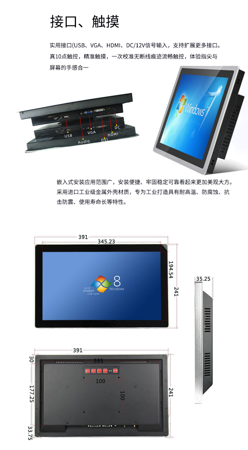 內(nèi)嵌式X86工業(yè)一體機7寸/10.1寸/15.6寸/21.5寸工控一體機